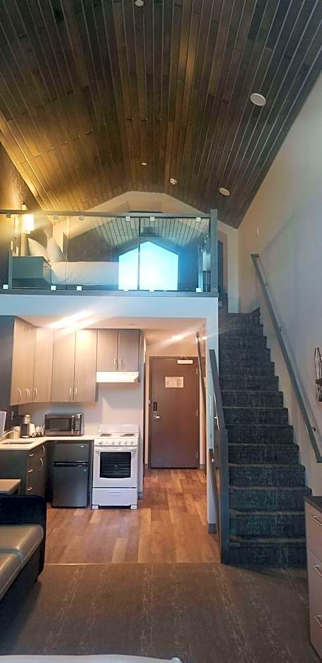 1 King 1 Queen Non-Smoking Loft Bedroom Sofabed Full Kitchen 2 Flat Screen Tvs Full Breakfast is 323 square feet and includes a double bed 131-150 width.